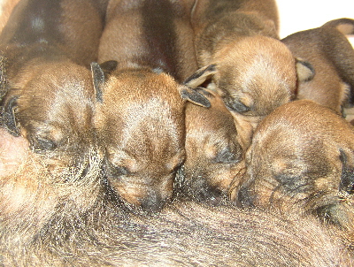 Am 10. Februar 2005 bekam Umbra (genannt "Fine") ihre ersten Welpen, und zwar zwei Rüden und drei Hündinnen. Der Vater ist Alex vom Reesenufer FCI